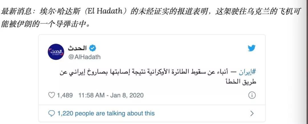 事發(fā)后,有外媒援引約旦媒體AL Hadath報(bào)道稱,失事的烏克蘭波音客機(jī)疑似遭到伊朗機(jī)管局擊落。