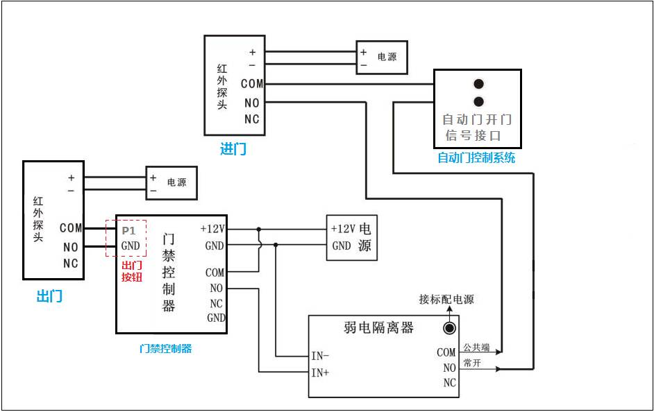 所以正確的實現門禁控制器控制自動門的接線方式是這樣的: