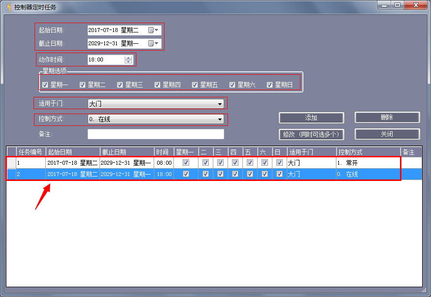 需求一:某客戶要求自動門門禁在上班時間 8:00-18:00 人一到門口,自動門自動打開,非上班時間,需要合法的人刷卡門才打開。