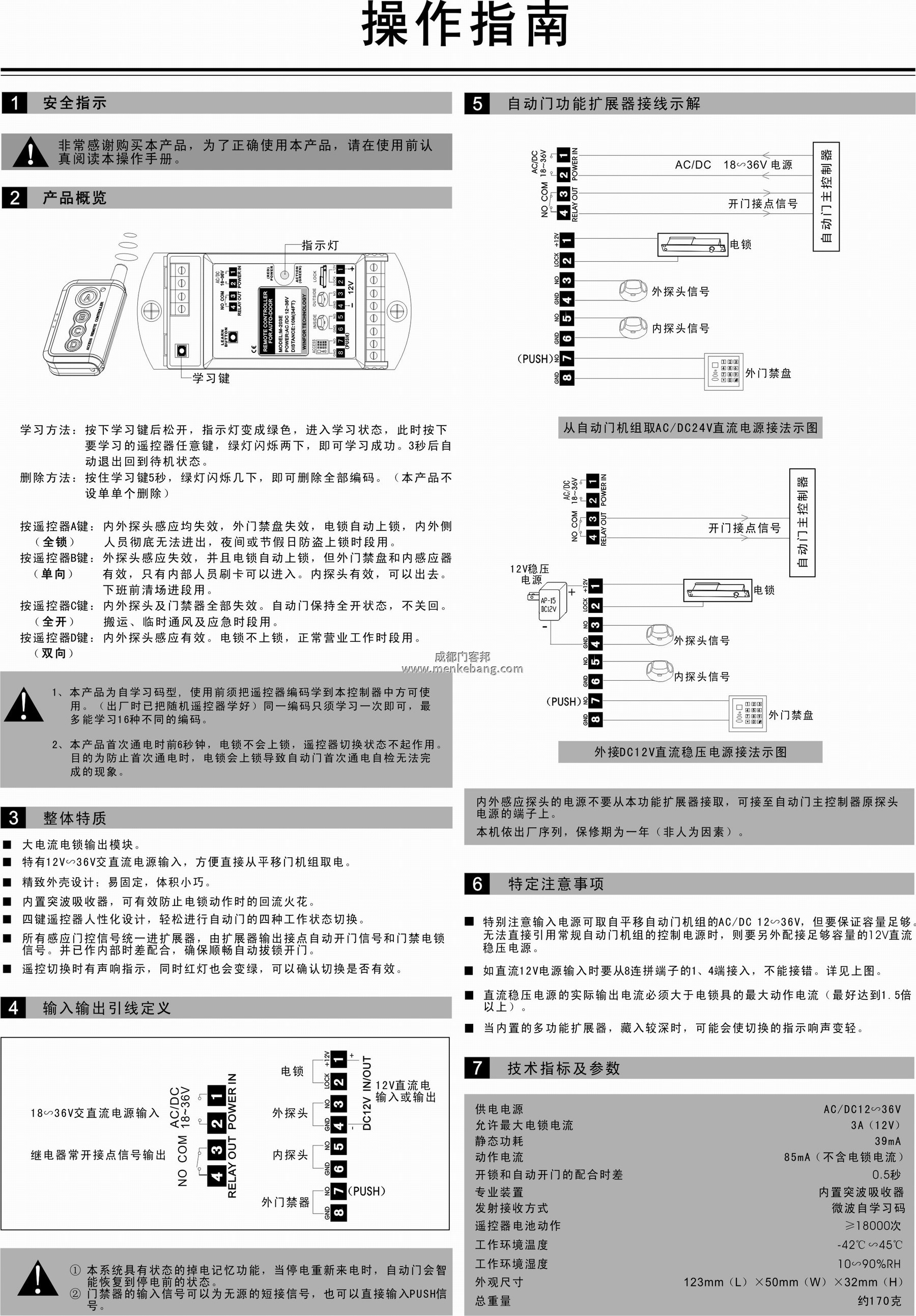 歐尼克自動(dòng)門說明書.歐尼克自動(dòng)門控制器接線圖解